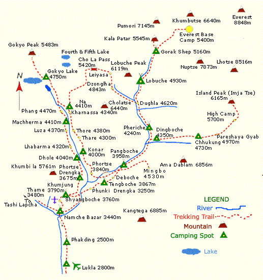 - Everest Base Camp Trail: The trek follows the iconic trail to Everest Base Camp, passing through picturesque locations like Namche Bazaar, Tengboche, Pheriche, Lobuche, and Dingboche.